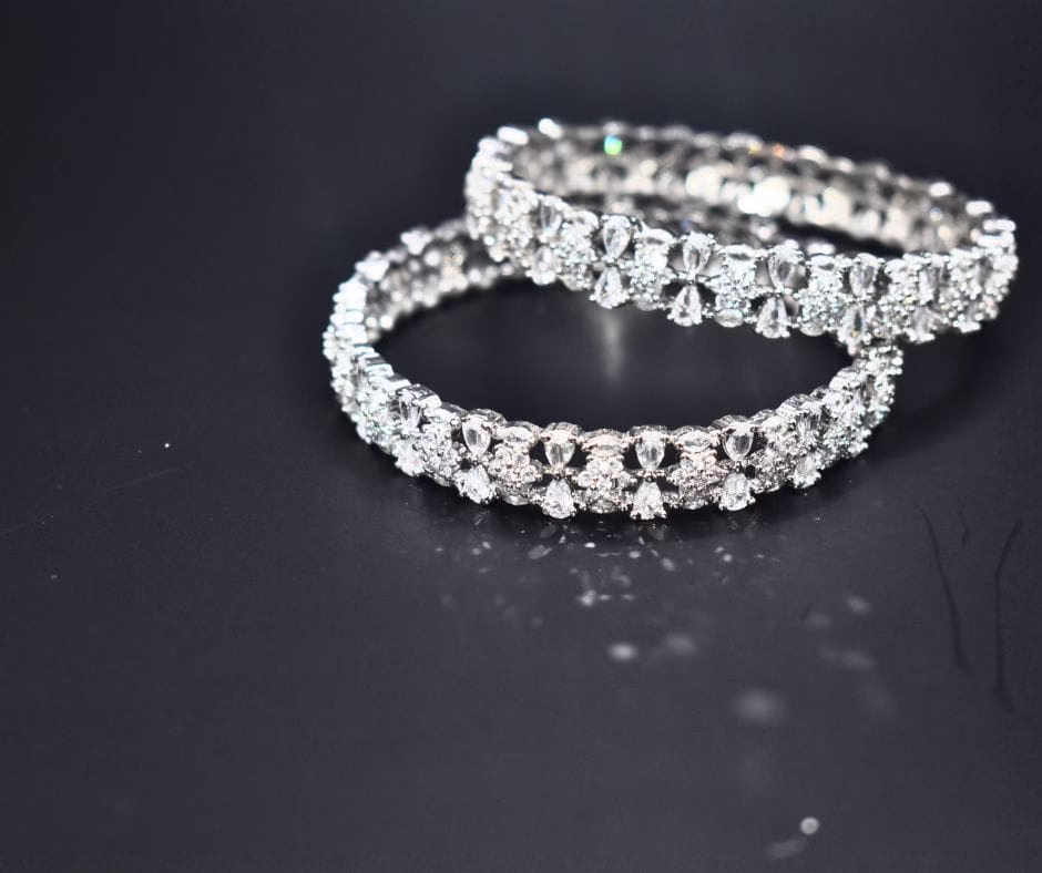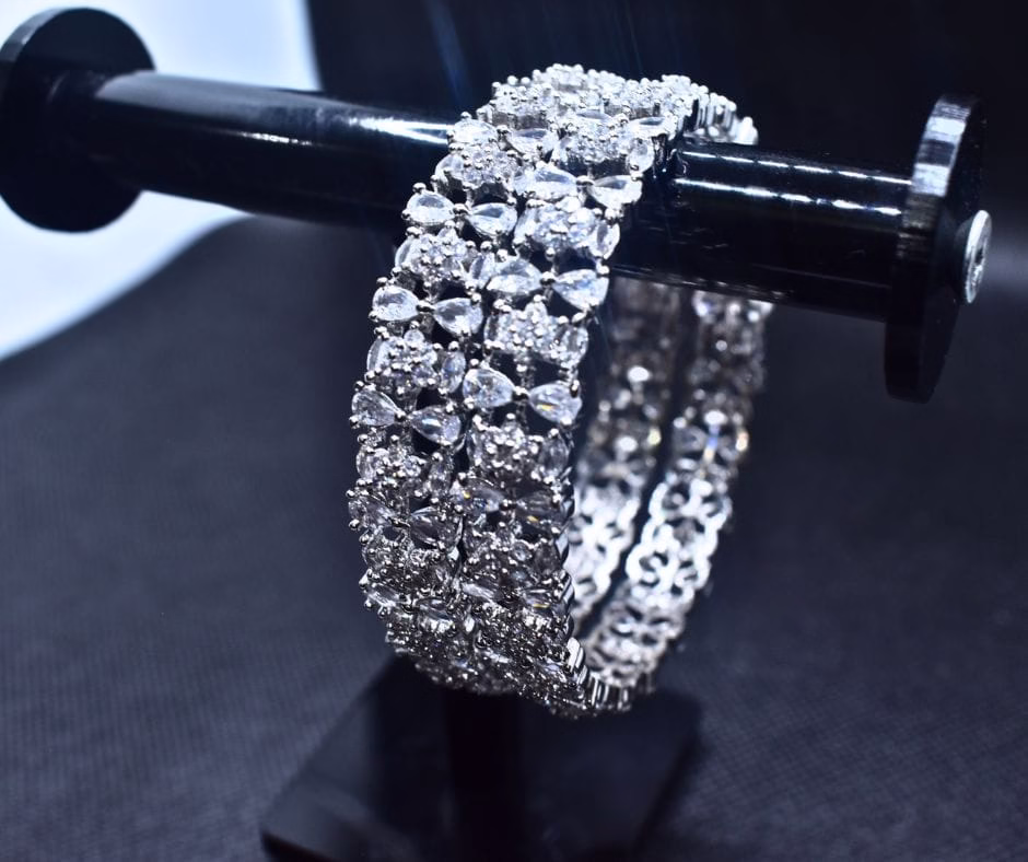 Eleganza BG-007 – 1K Silver-Toned Zircon Bangles (Pair)