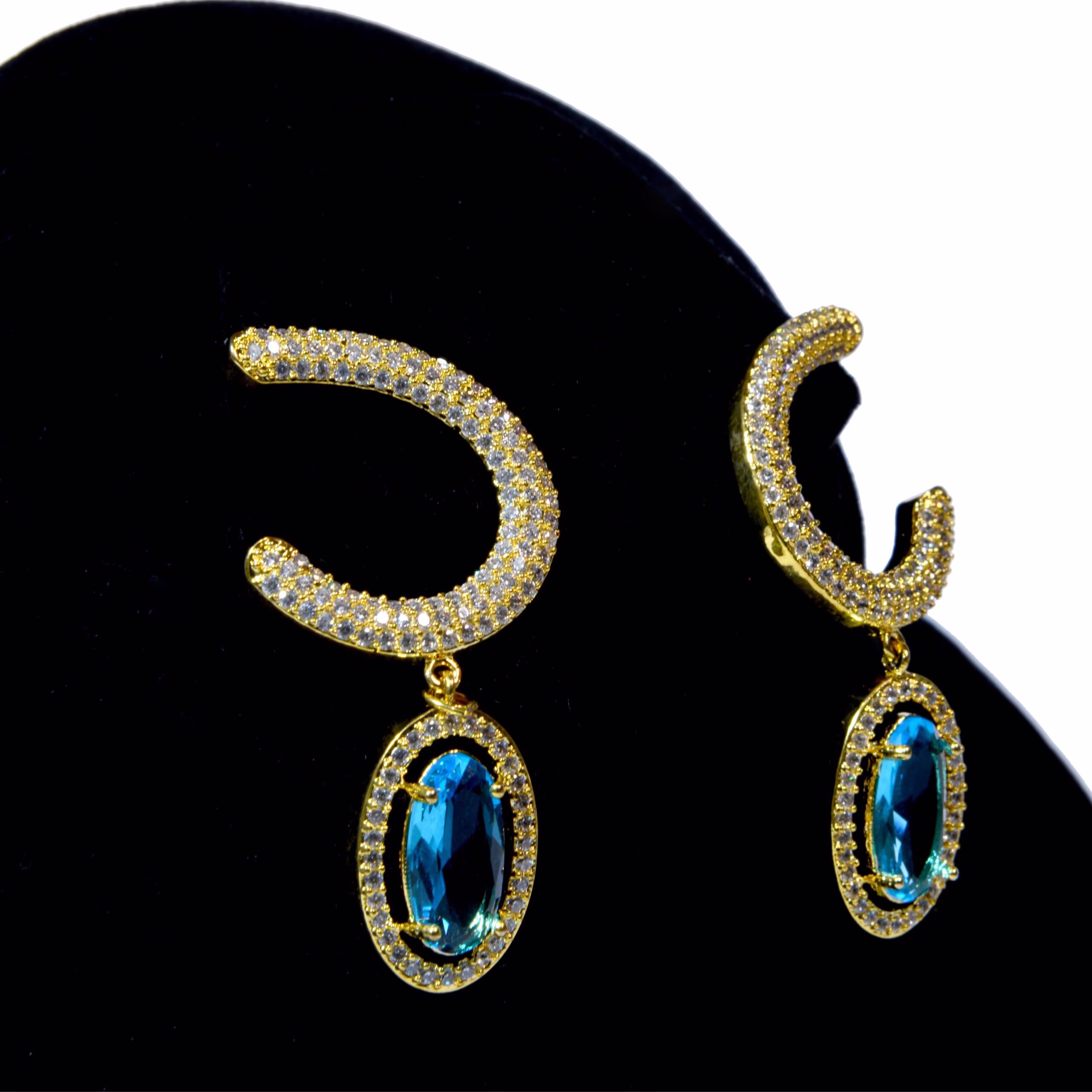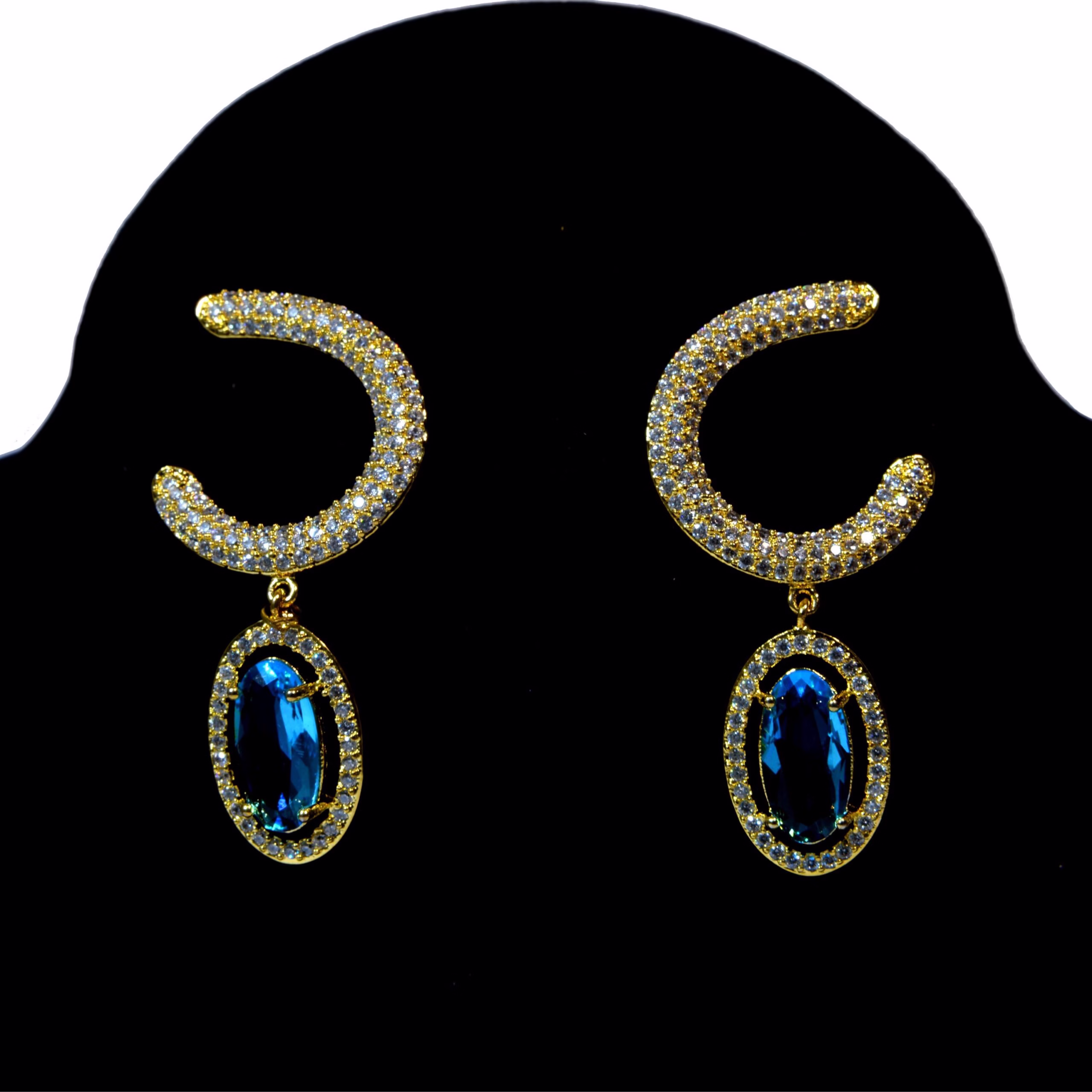 Blue Gemstone Earrings with Crystal Accents & Golden Base (ER-001)