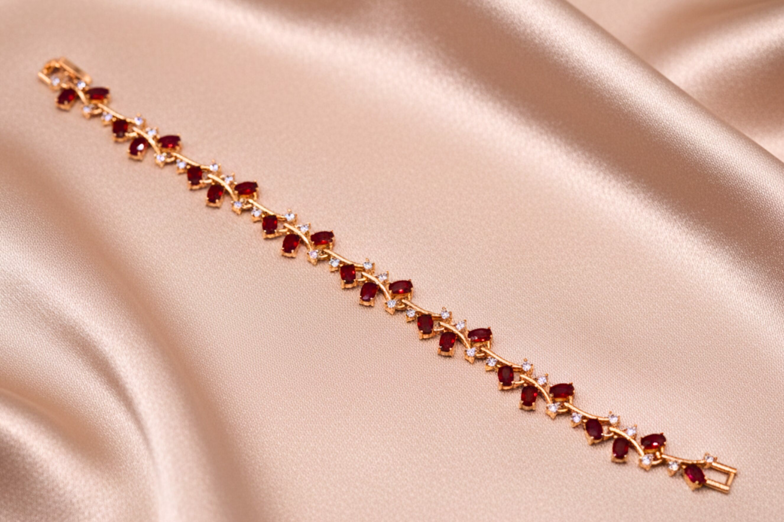 BR0024 is crafted with high quality alloy metal that shines beautifully and maintains its finish for long lasting wear. Available in elegant Golden and Silver bases, each option is set with imported zircons in rich color tones. The golden base features deep red stones with tiny white zircons,while the silver version offers blue and white zircon with tiny zircons detailing, giving you both stylish and versatile choices. Its neat floral linked pattern makes it a premium, classy bracelet for everyday and occasion use.