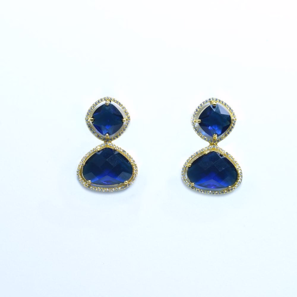 Eleganza ER0016 – Gold & Crystal Blue Gemstone Double-Drop Earrings