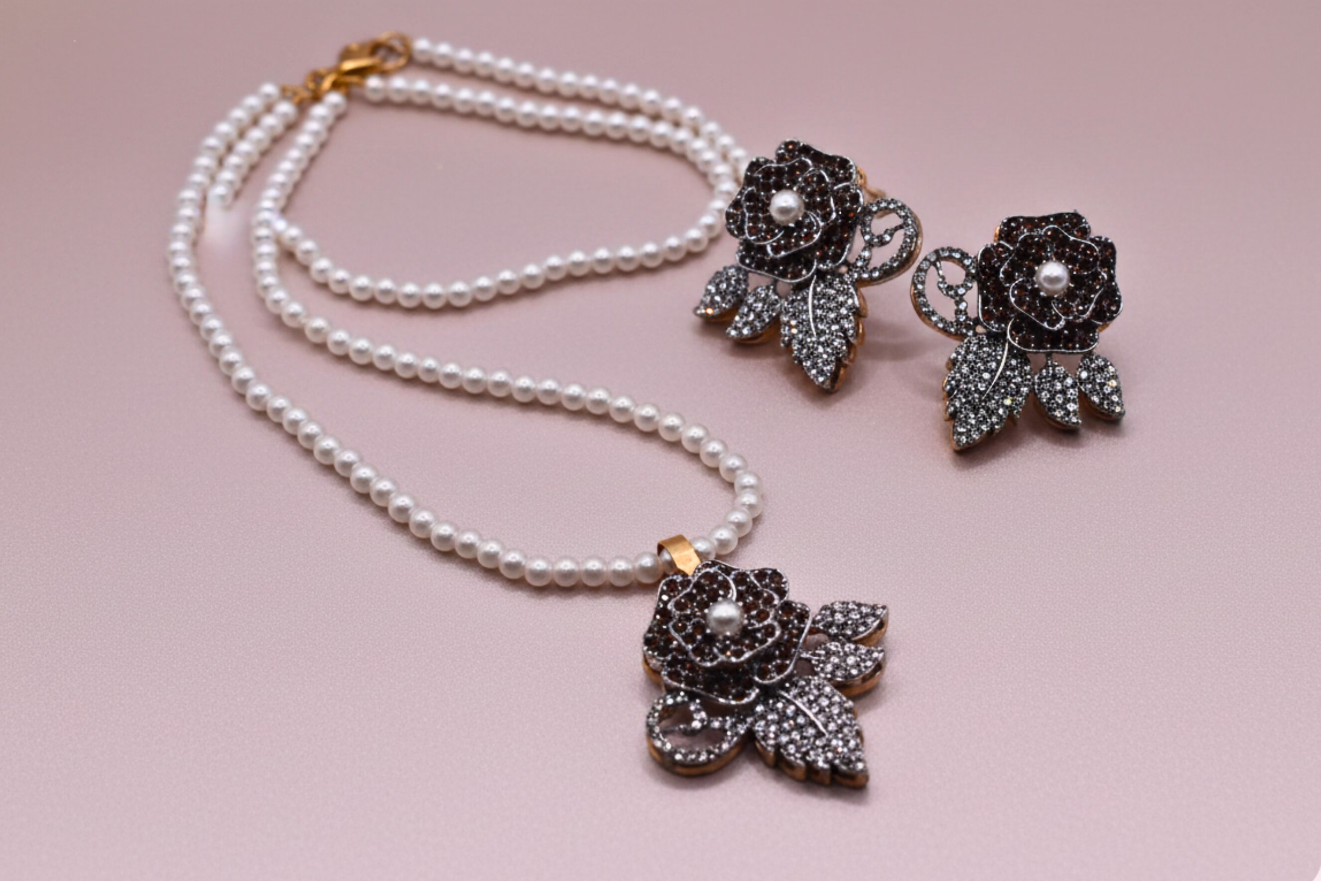 The pearl mala is smooth, neatly polished, and evenly strung from end to end. The pearls give a classic and soft look, sitting comfortably on the neck and perfectly balancing the floral pendant. This Turkish style floral mala is trendy nowadays, lightweight, and perfect for daily wear and short gatherings.